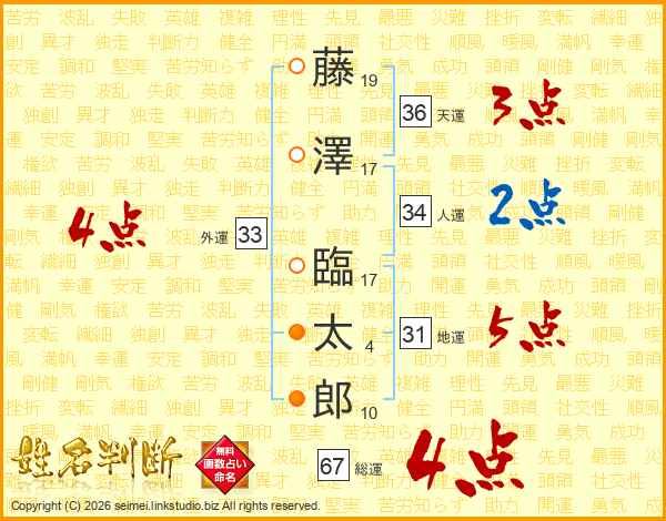藤(19画)澤(17画) 臨(17画)太(4画)郎(10画)