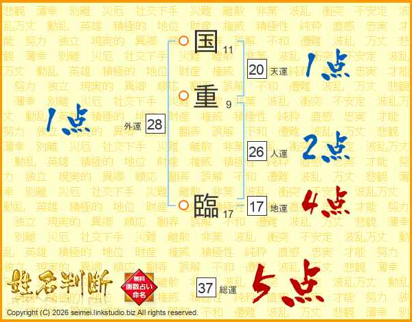 国重臨さんの総運は37画の5点!