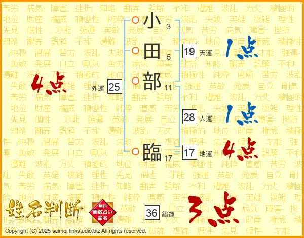 小田部臨さんの天運は19画の1点!