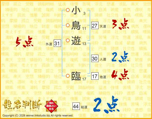 小鳥遊臨さんの総運は44画の2点!
