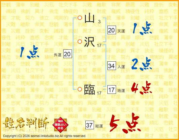山沢臨さんの総運は37画の5点!