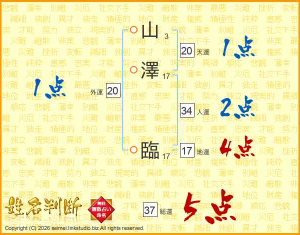 山(3画)澤(17画) 臨(17画)