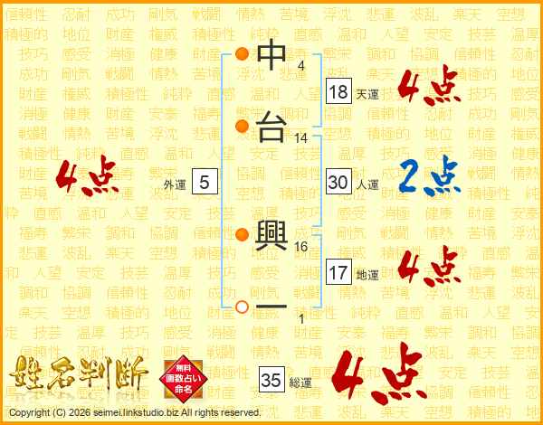中台興一さんの総運は35画の4点!
