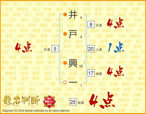 井戸興一さんの人運は20画の1点!