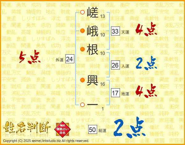 嵯(13画)峨(10画)根(10画) 興(16画)一(1画)