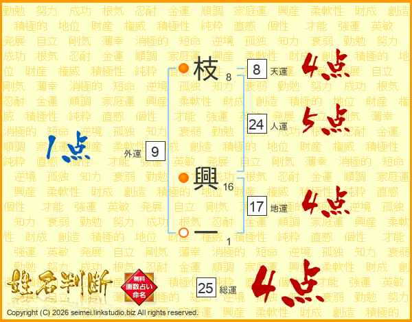 枝興一さんの総運は25画の4点!
