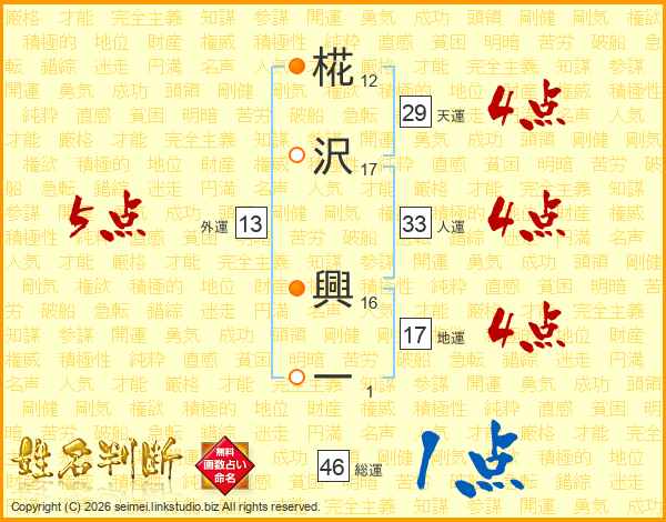 椛沢興一さんの人運は33画の4点!