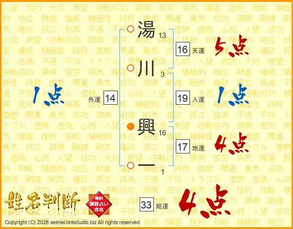 湯川興一さんの総運は33画の4点!