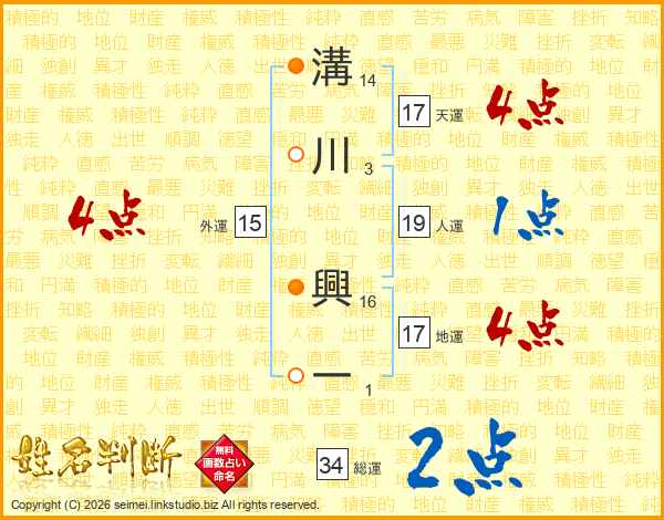 溝川興一さんの天運は17画の4点!