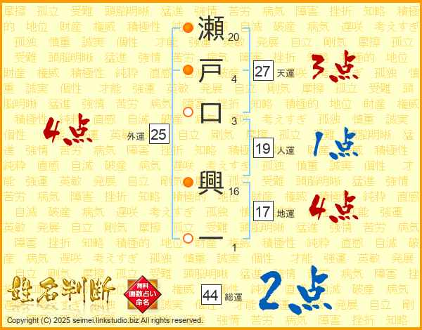 瀬戸口興一さんの地運は17画の4点!