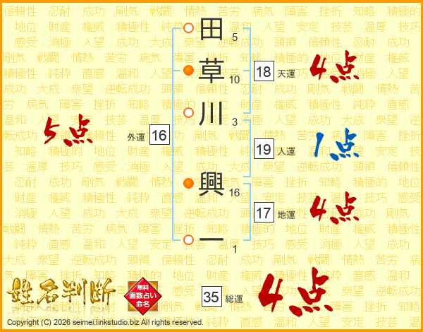 田(5画)草(10画)川(3画) 興(16画)一(1画)