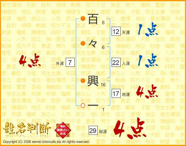 画数の奇数(○陽)と偶数(●陰)の配列で吉凶を占います。どちらかにかたよる名前は大凶名で避ける必要があります。画数の奇数偶数。