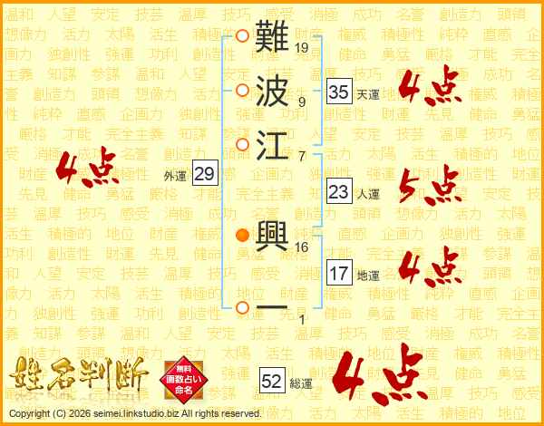 難波江興一さんの天運は35画の4点!