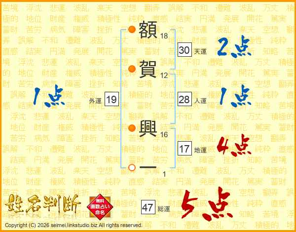 額賀興一さんの総運は47画の5点!