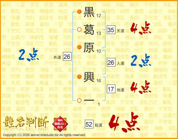 黒葛原興一さんの総運は52画の4点!