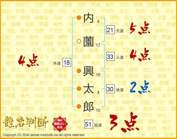 内薗興太郎さんの人運は33画の4点!
