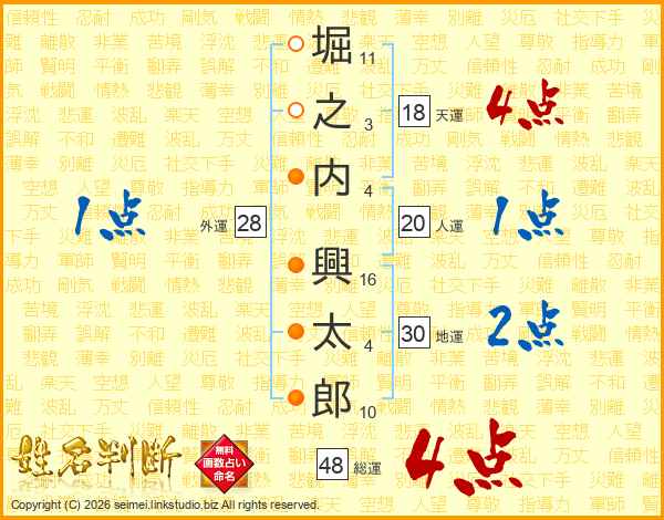 堀之内興太郎さんの総運は48画の4点!