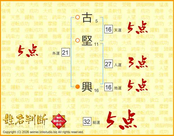古堅興さんの天運は16画の5点!