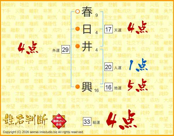 春日井興さんの天運は17画の4点!