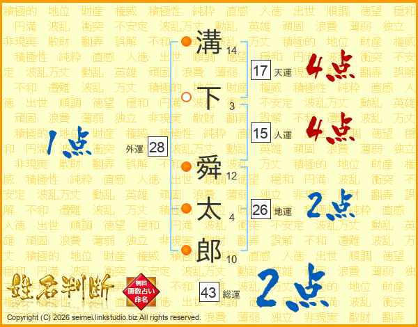 溝下舜太郎さんの総運は43画の2点!