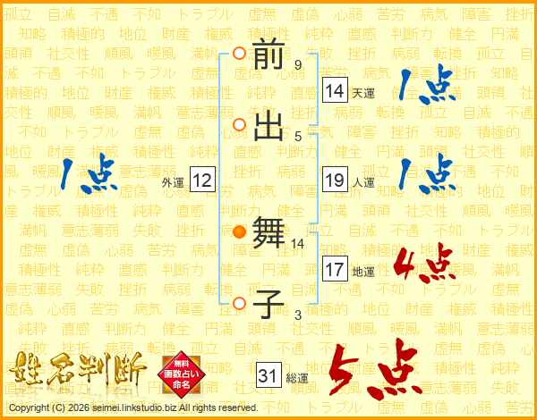 前出舞子さんの総運は31画の5点!