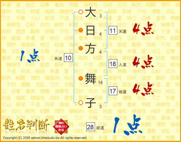 大日方舞子さんの天運は11画の4点!