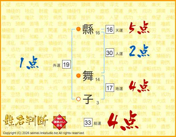 縣舞子さんの総運は33画の4点!
