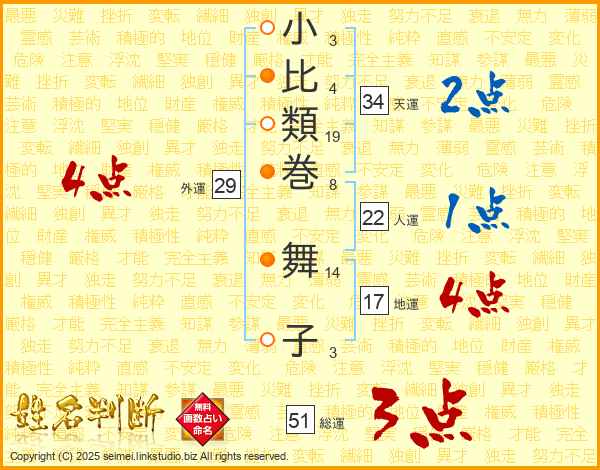 小(3画)比(4画)類(19画)巻(8画) 舞(14画)子(3画)