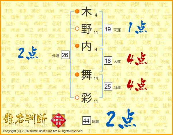 木野内舞彩さんの総運は44画の2点!