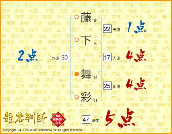 藤(19画)下(3画) 舞(14画)彩(11画)