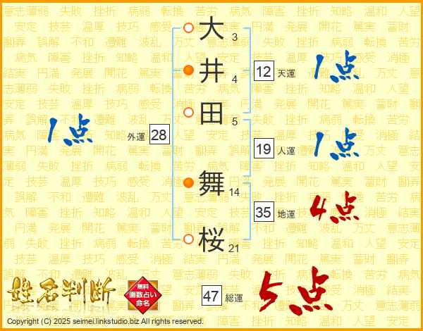 大井田舞桜さんの総運は47画の5点!