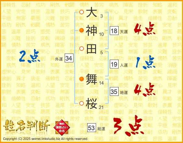 大(3画)神(10画)田(5画) 舞(14画)桜(21画)