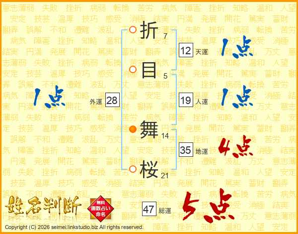 折目舞桜さんの総運は47画の5点!