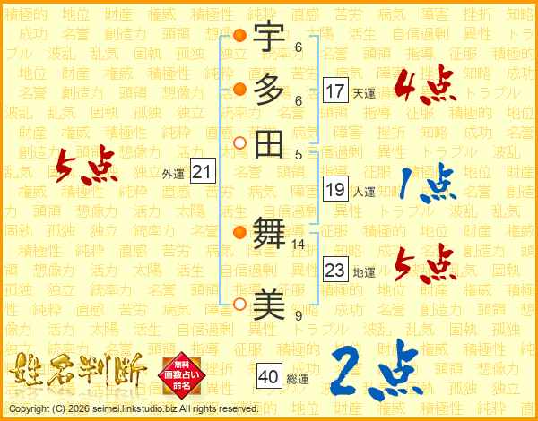 宇(6画)多(6画)田(5画) 舞(14画)美(9画)
