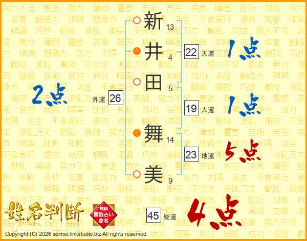 新井田舞美さんの総運は45画の4点!