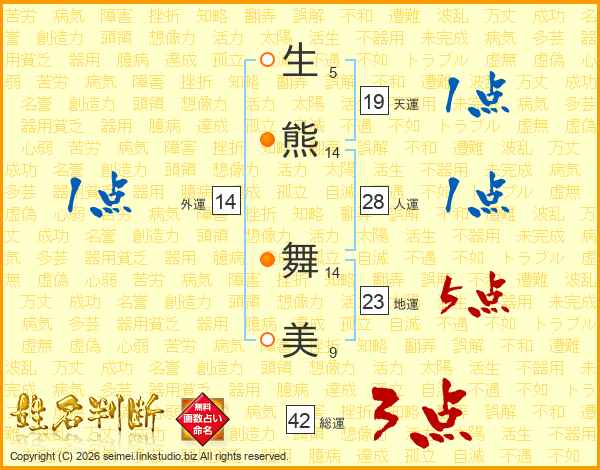 生熊舞美さんの外運は14画の1点!