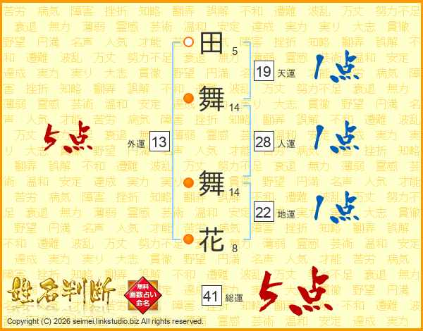 田舞舞花さんの総運は41画の5点!