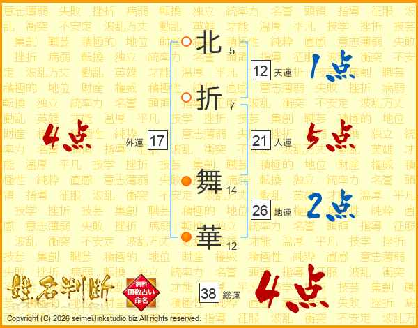 北折舞華さんの総運は38画の4点!