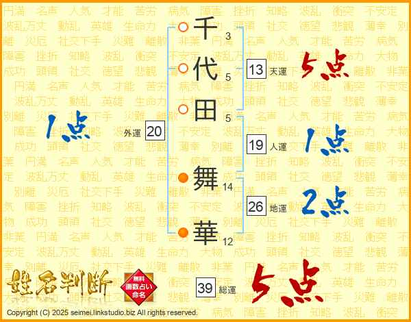 千(3画)代(5画)田(5画) 舞(14画)華(12画)