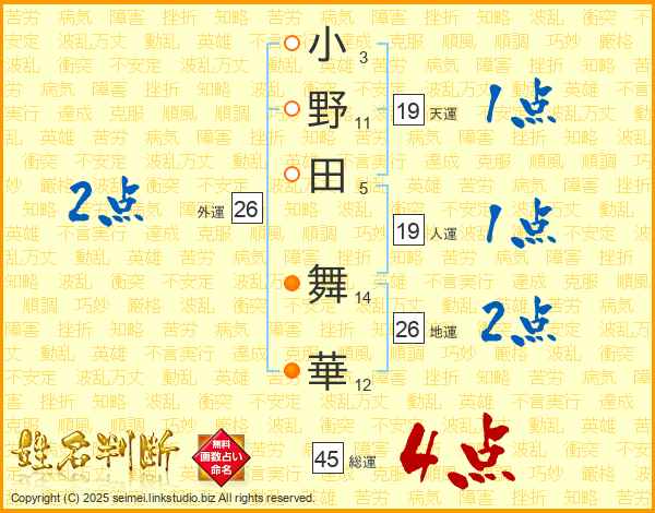 小(3画)野(11画)田(5画) 舞(14画)華(12画)