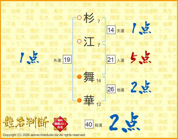 杉(7画)江(7画) 舞(14画)華(12画)