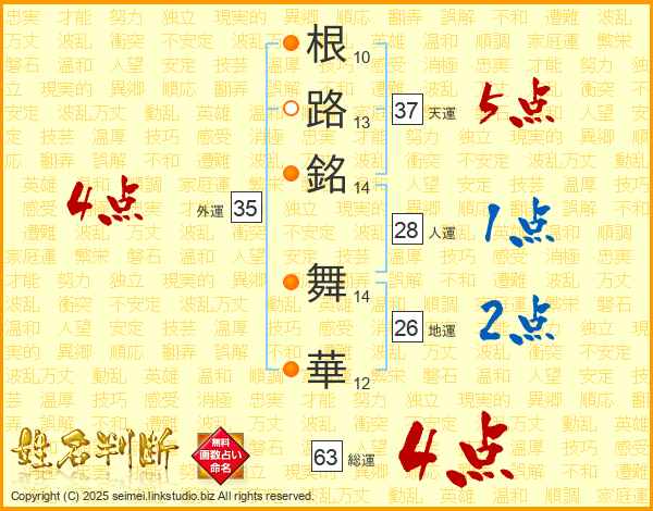 根路銘舞華さんの総運は63画の4点!