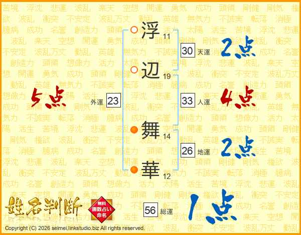 浮辺舞華さんの総運は56画の1点!