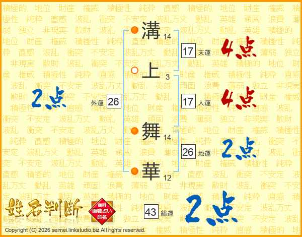 溝上舞華さんの総運は43画の2点!