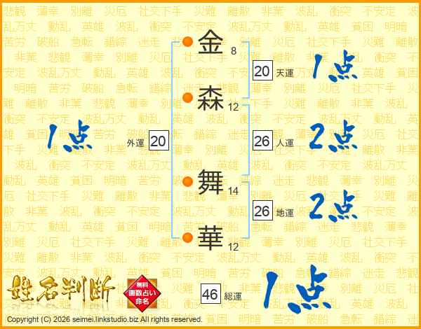 金(8画)森(12画) 舞(14画)華(12画)