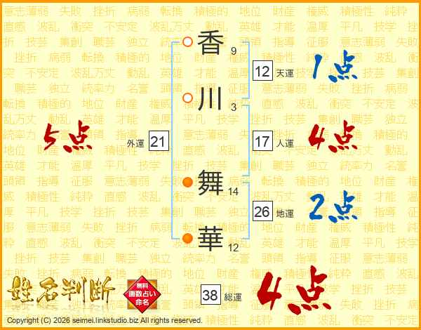 香川舞華さんの総運は38画の4点!