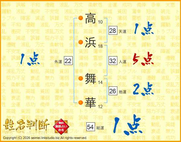 高浜舞華さんの総運は54画の1点!