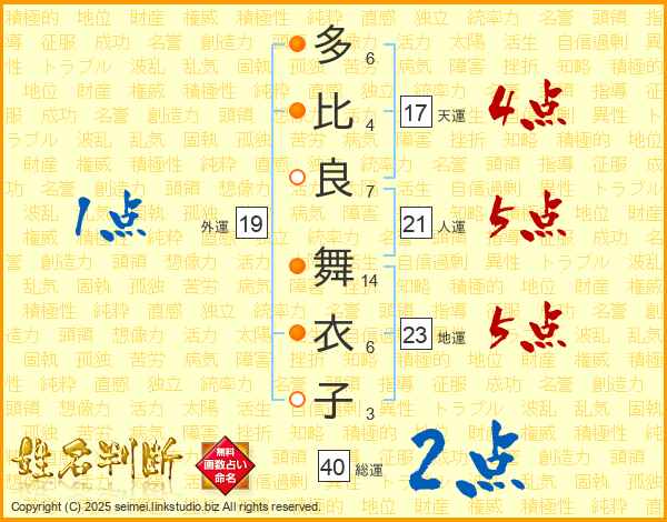 多(6画)比(4画)良(7画) 舞(14画)衣(6画)子(3画)