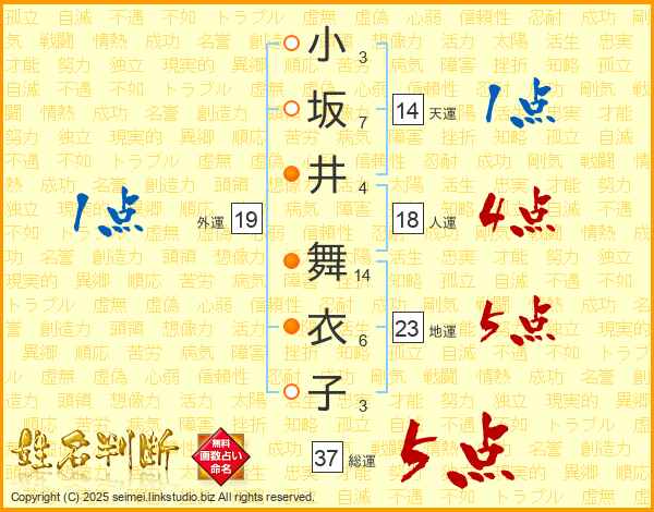 小坂井舞衣子さんの総運は37画の5点!