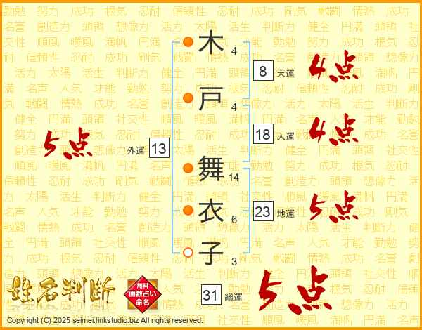 木戸舞衣子さんの総運は31画の5点!